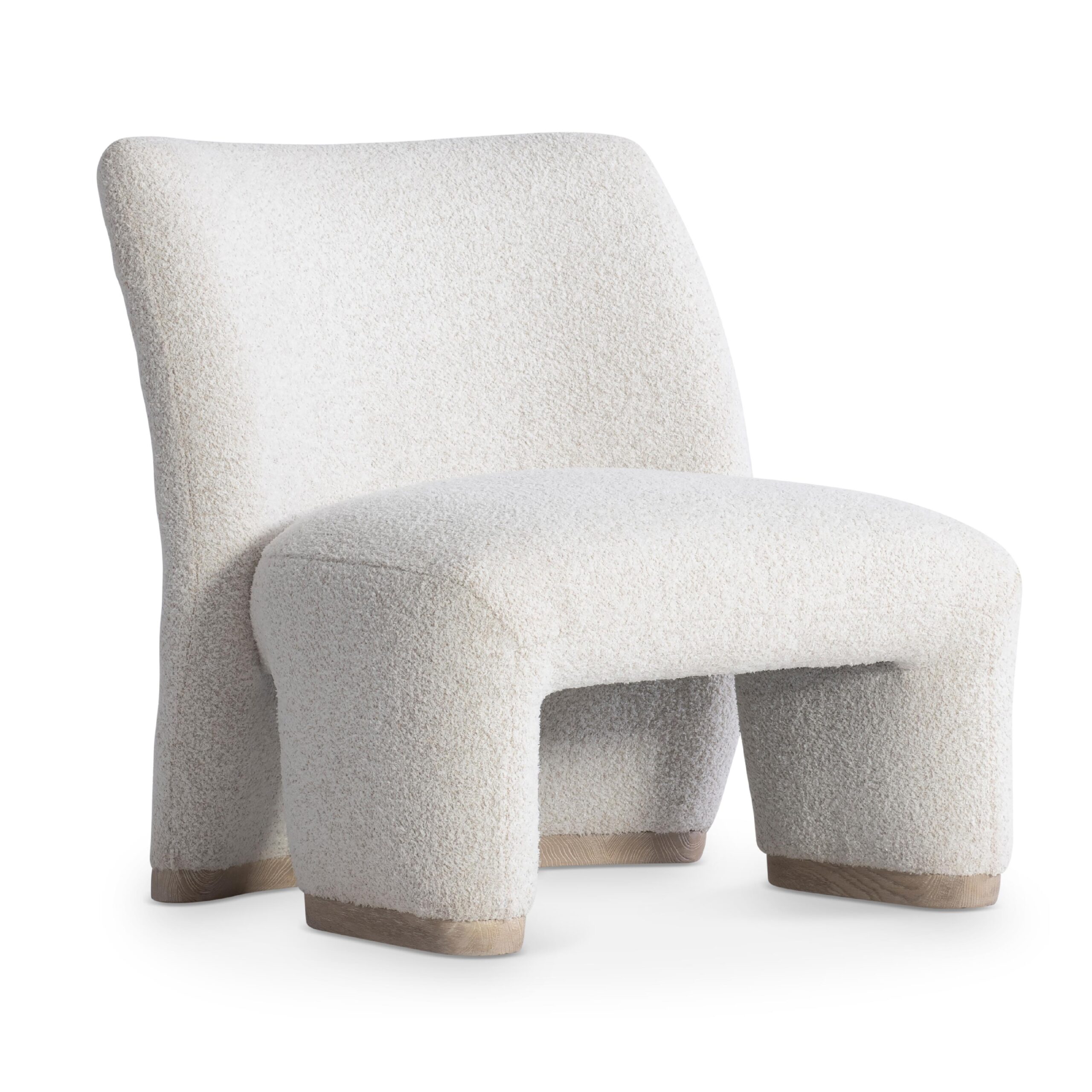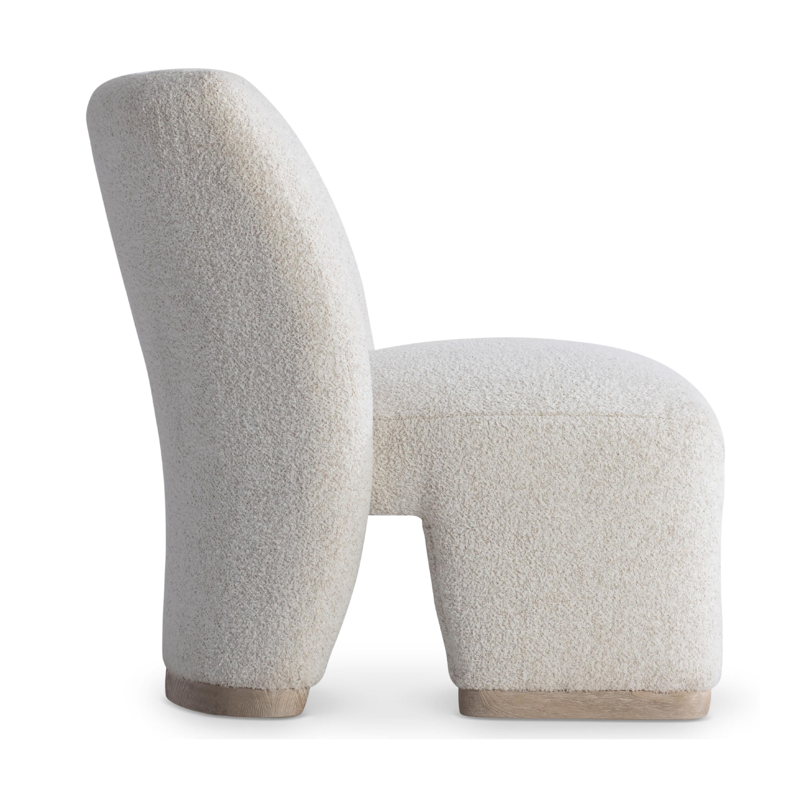 The Scout chair takes a unique approach to high design. The back and seat appear to be two interlocking pieces that curve and bend for supreme comfort. The chair rests on plinth-style feet in textured wood.
