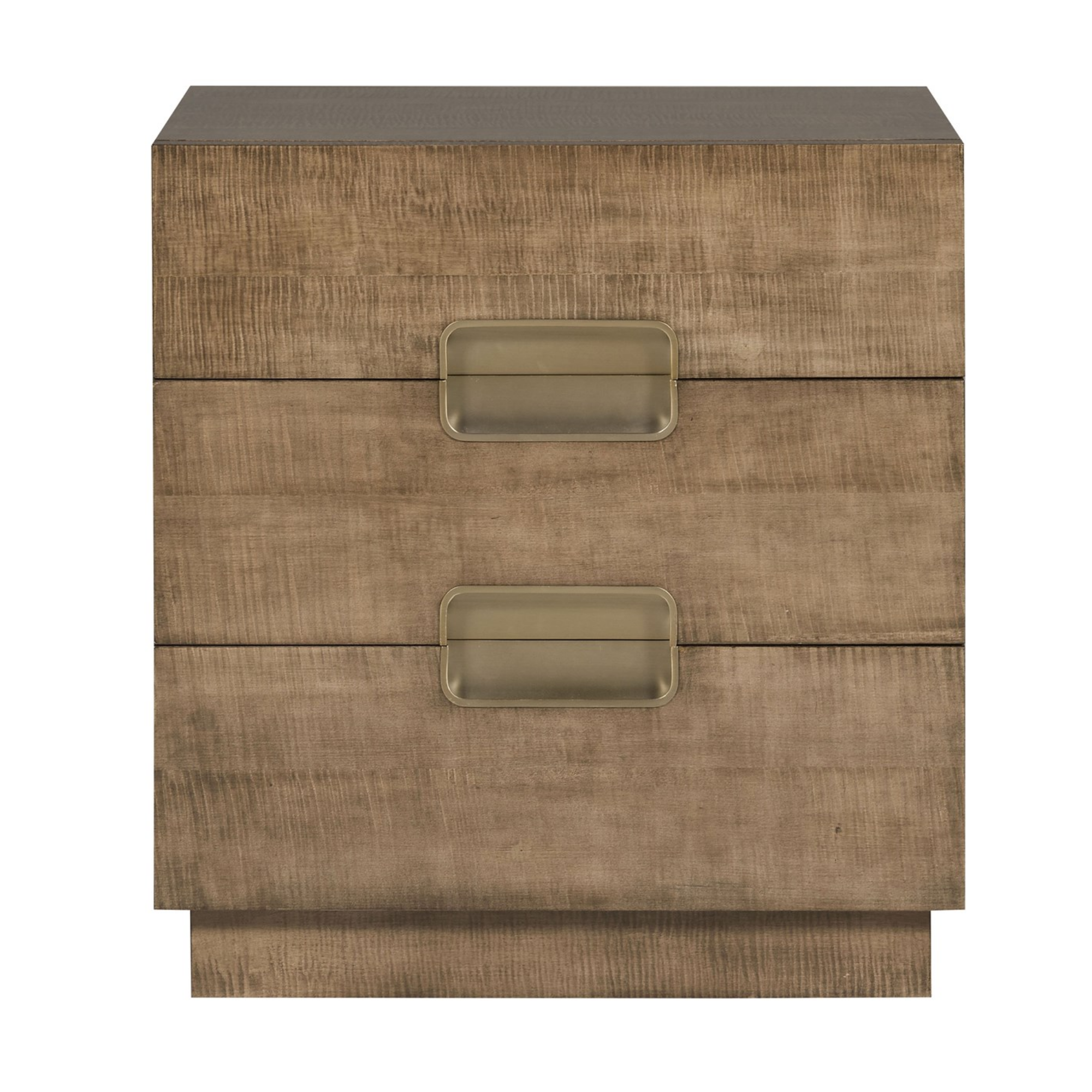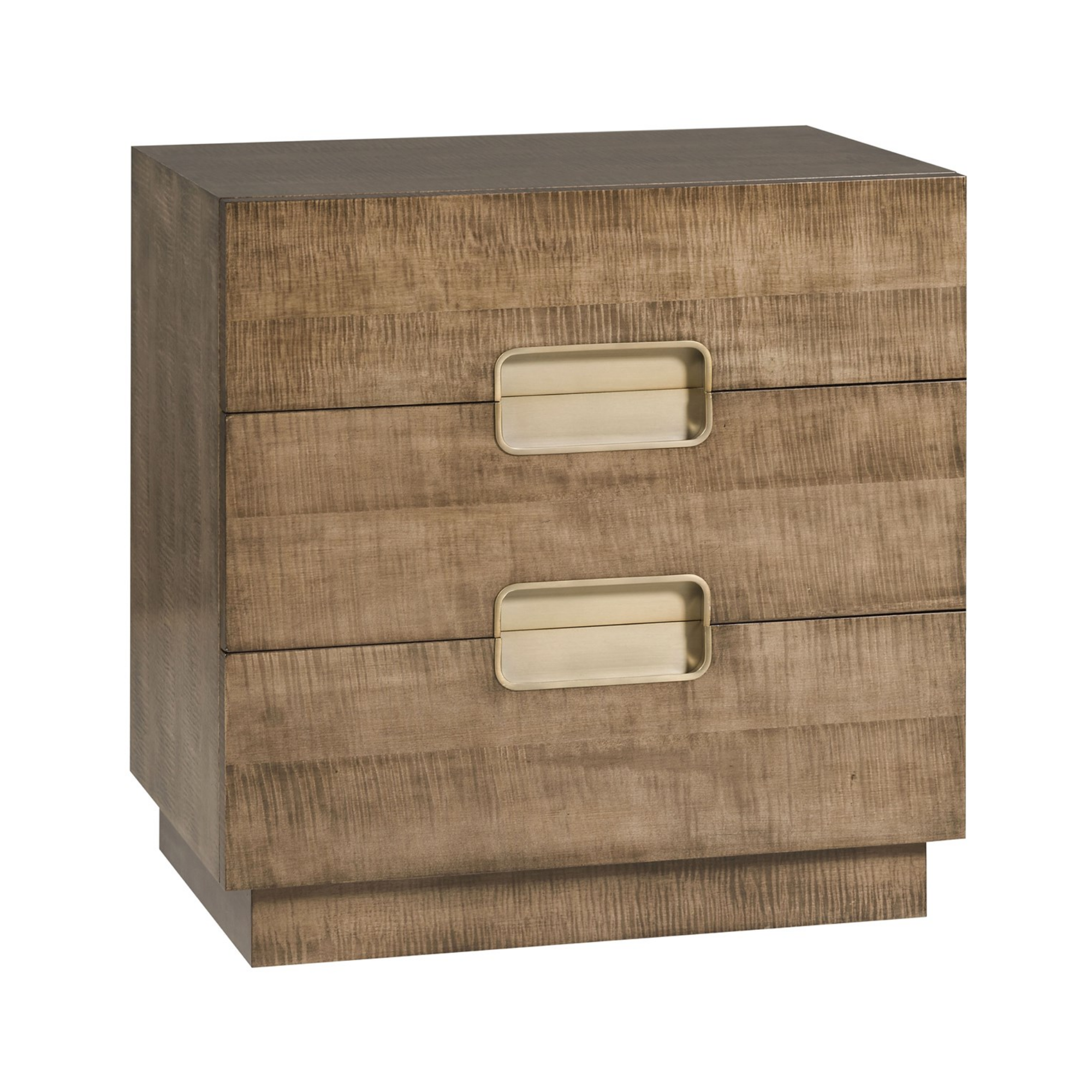 Finish options available. Soft Bronze Metal Accents, Bleached Figured Maple on Case,Base and Drawers, Hand Slots on Drawers, Three Drawers. As Shown in: Finish – Mocha.