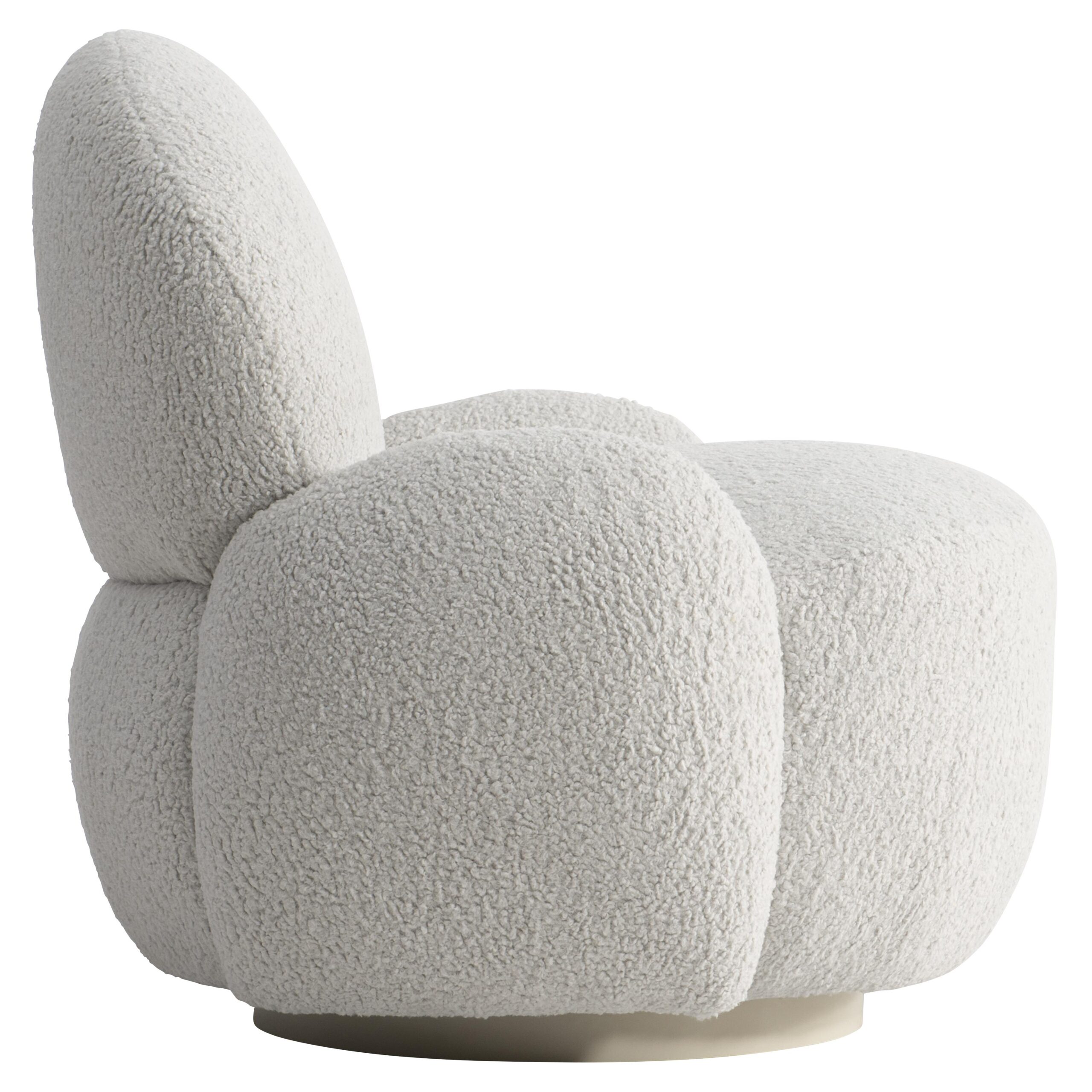 The St. Jean swivel chair is formed from rounded shapes that highlight lavish comfort. A generous seat and back are embraced by oval upholstered arms, while a smooth swivel base offers a 360-degree turn.