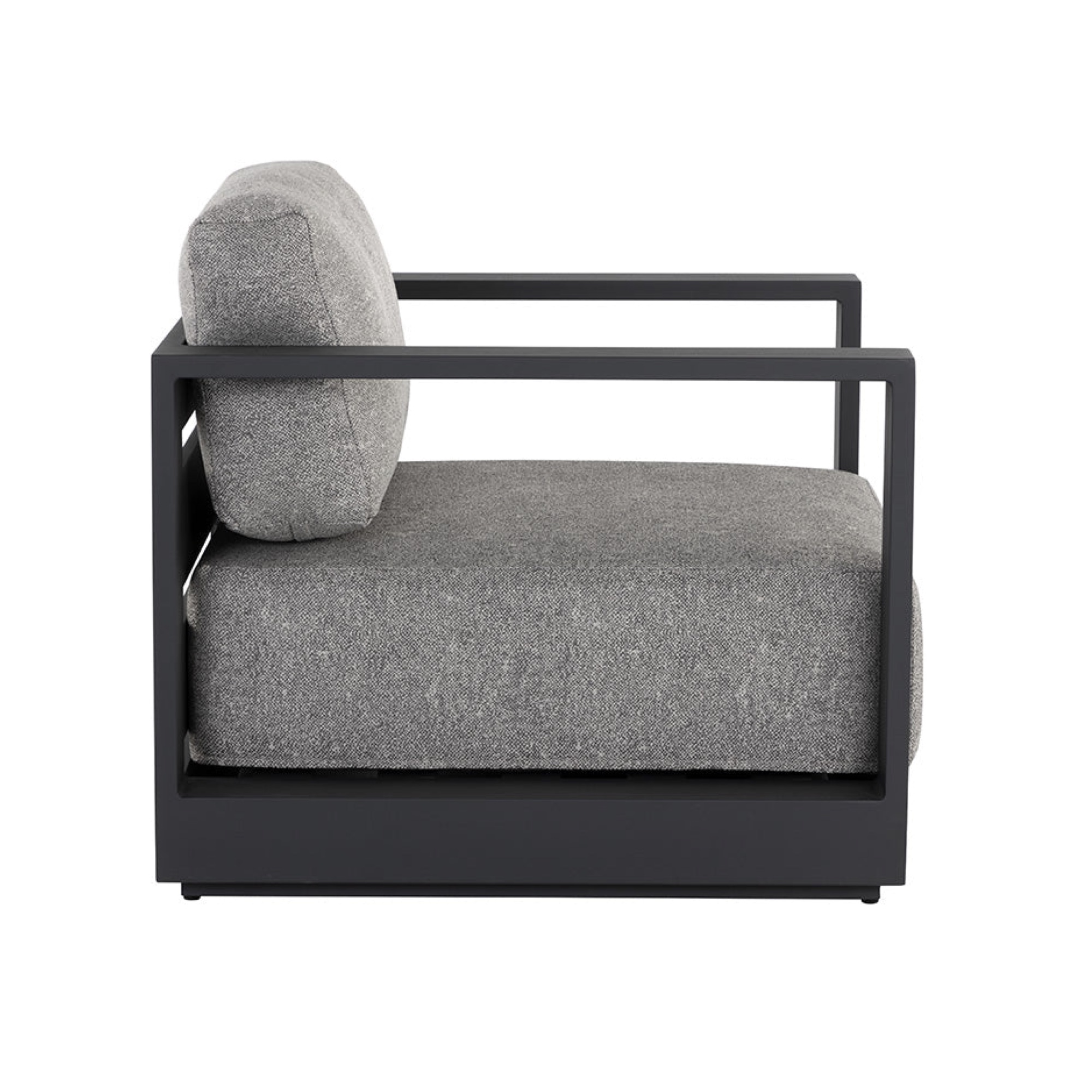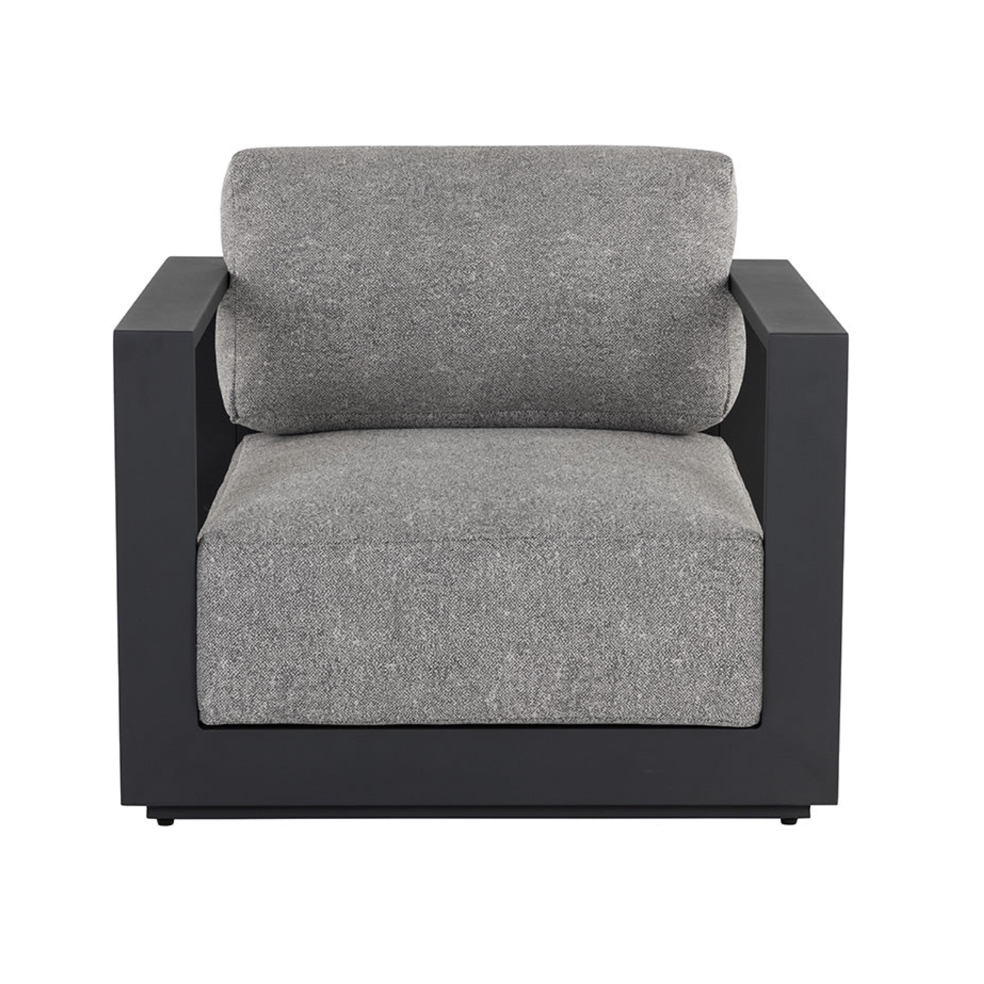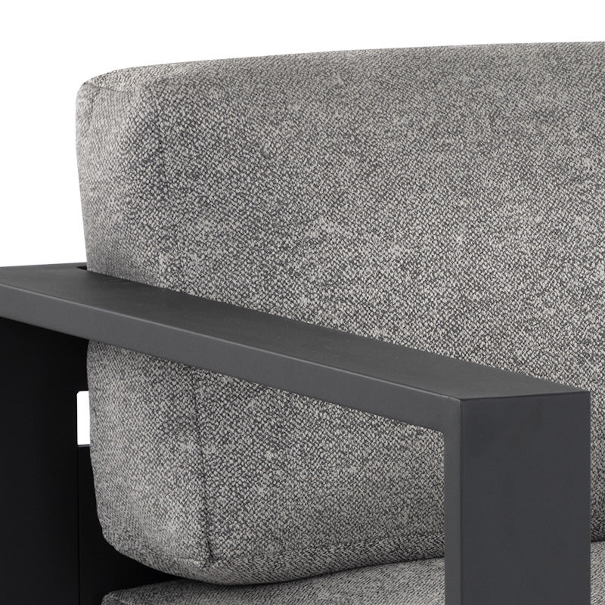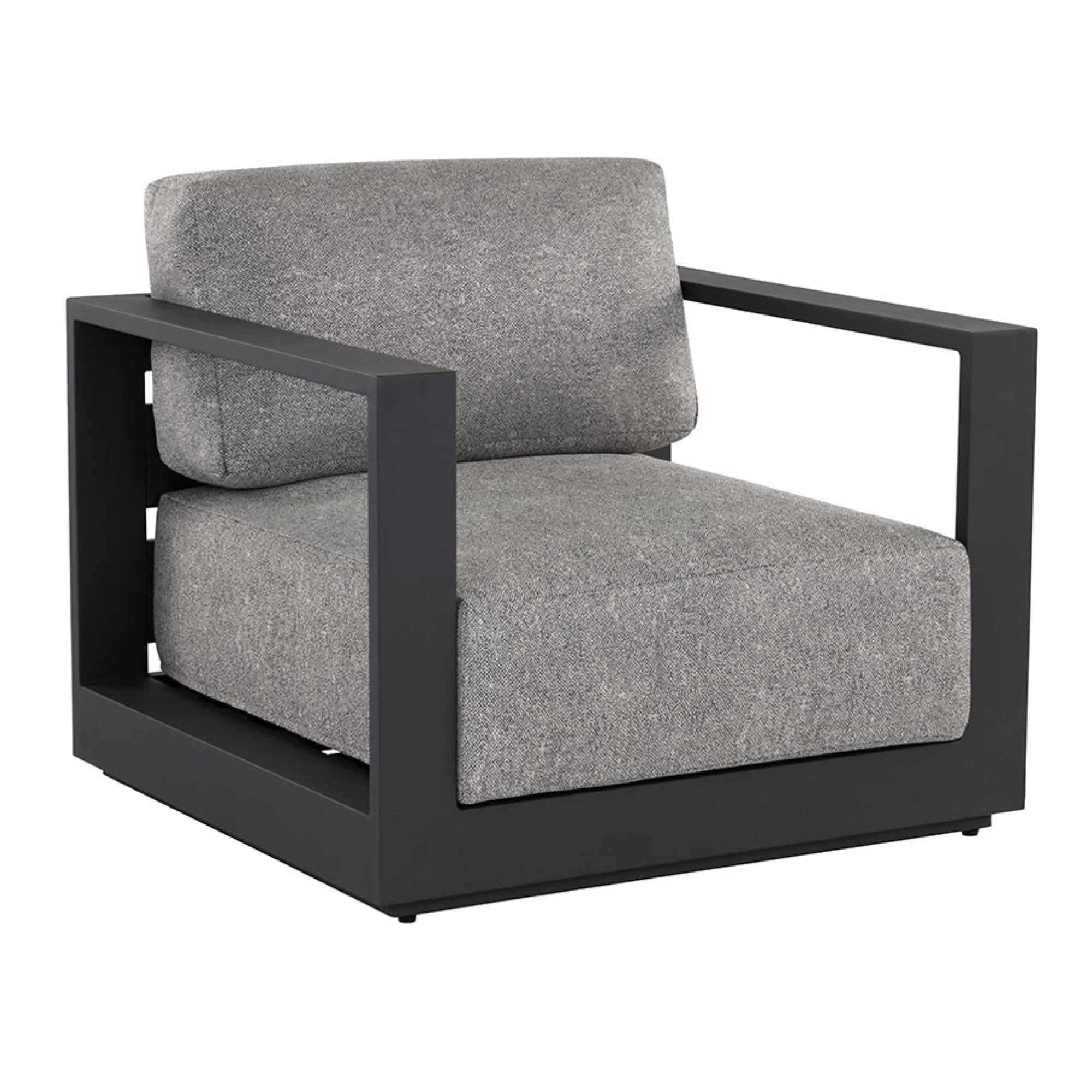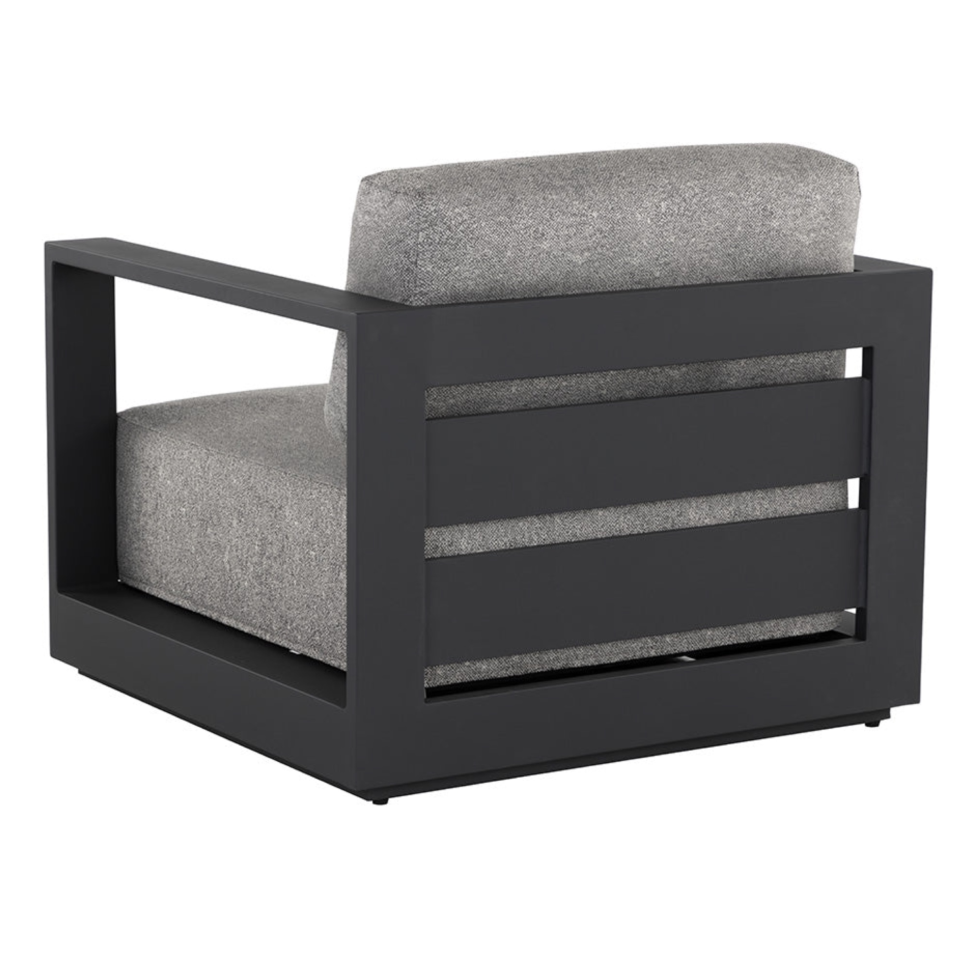 Cherish the outdoors with this modern armchair from our Outdoor collection that offers a comfortable and laid-back style. Stocked in lanikai salt and pepper fabric and completed with a powder-coated charcoal aluminum frame.