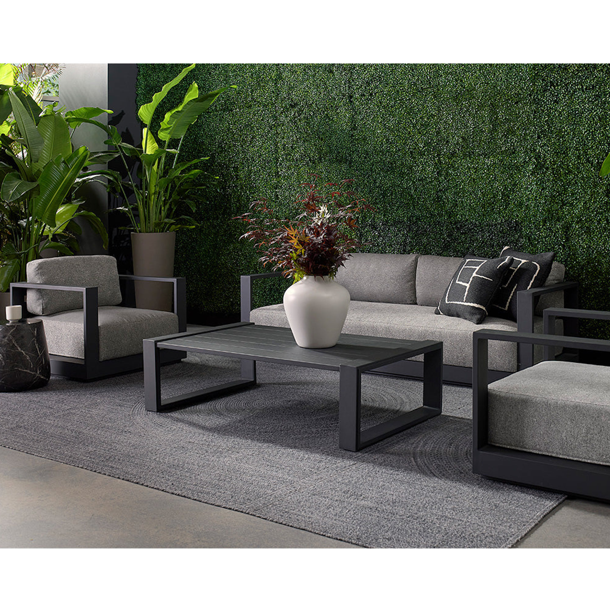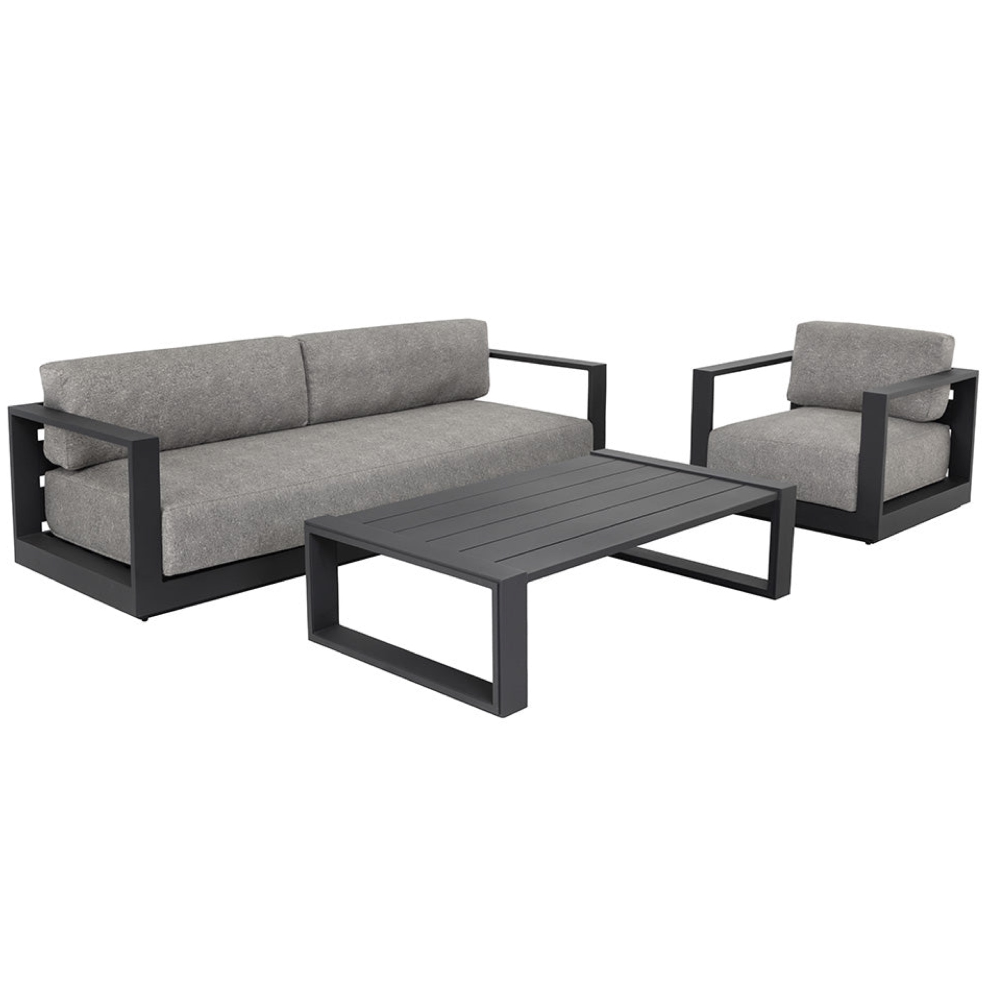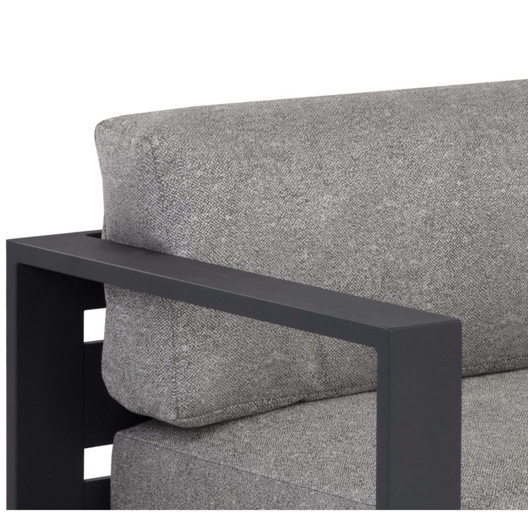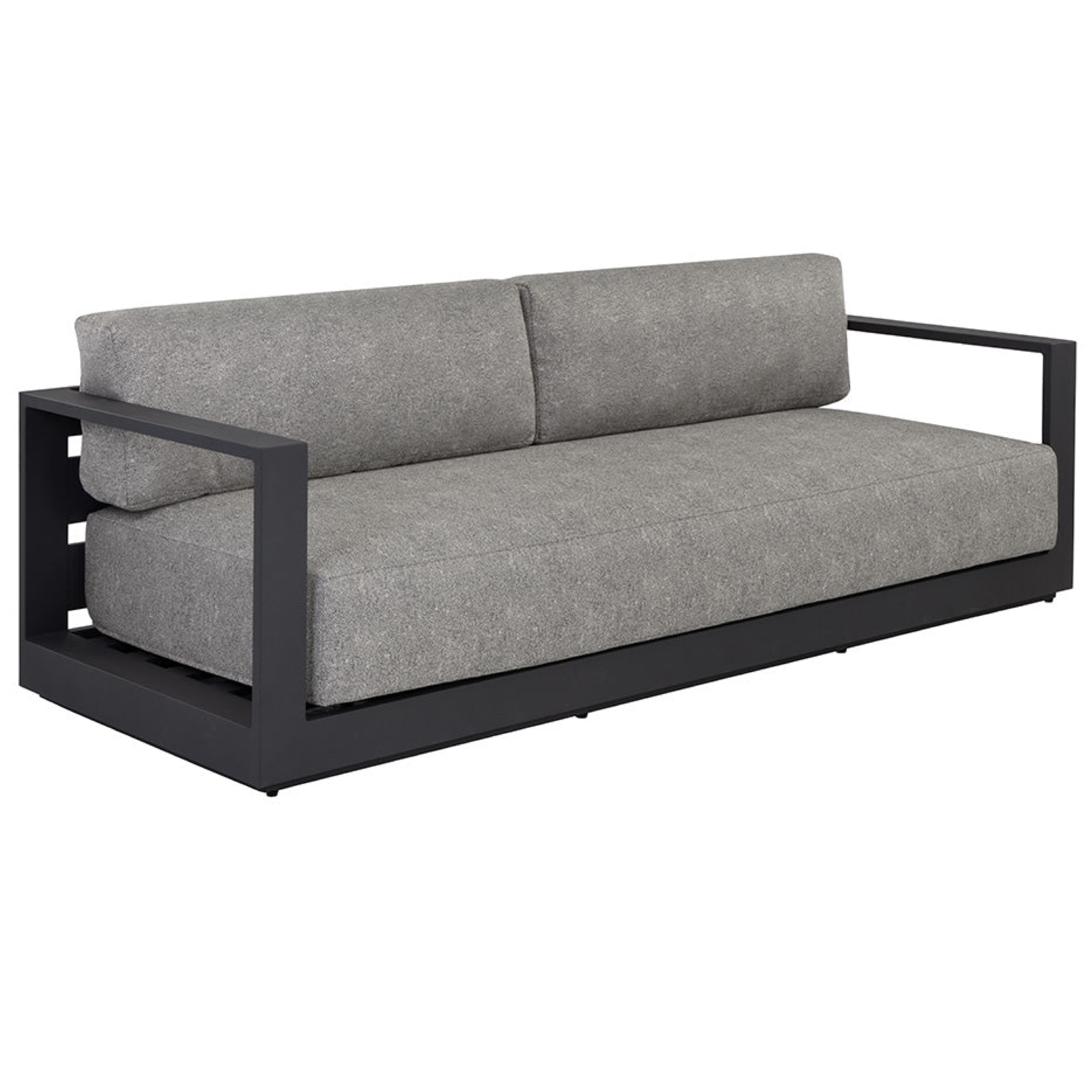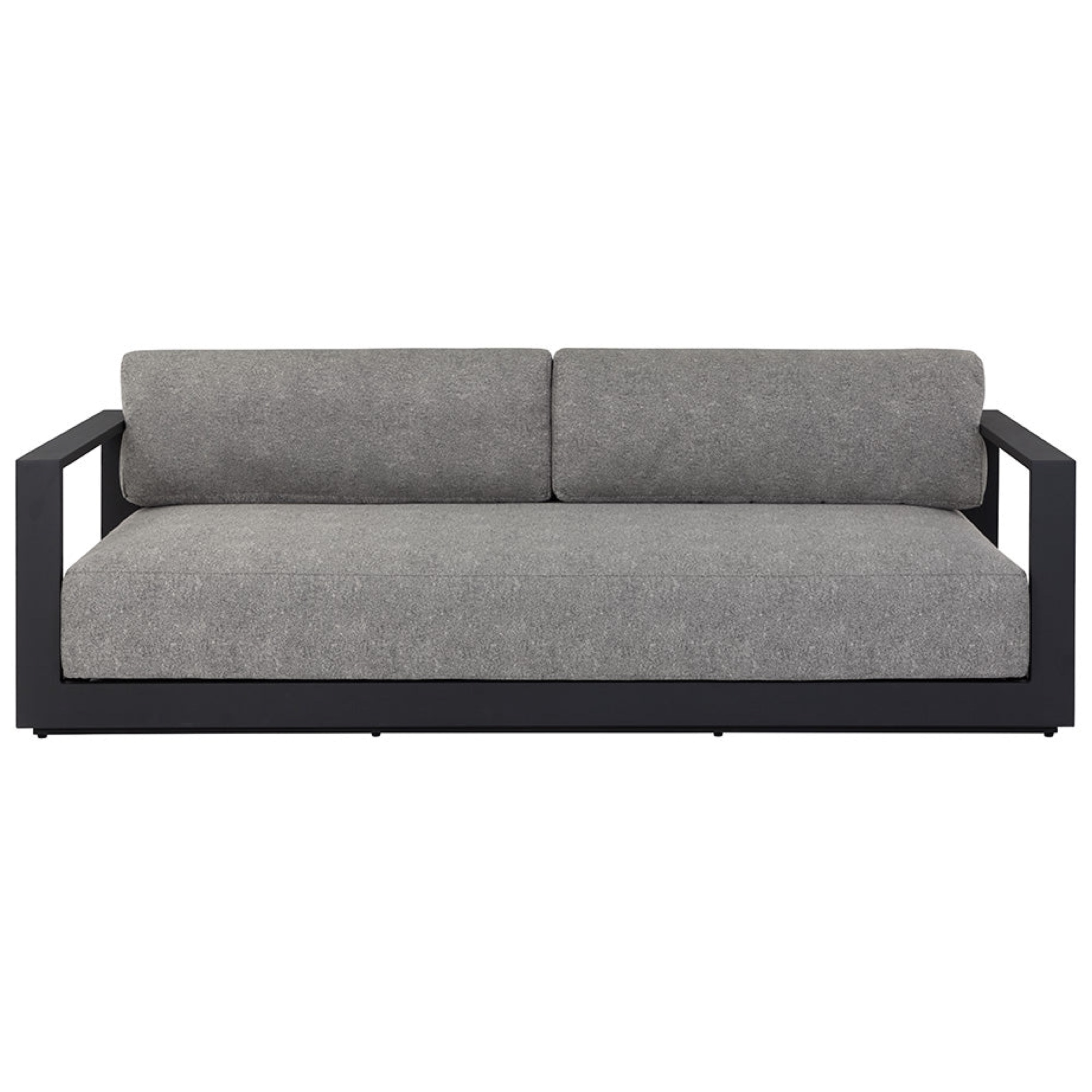 Cherish the outdoors with this modern sofa from our Outdoor collection that offers a comfortable and laid-back style. Stocked in Lanikai salt and pepper fabric and completed with a powder-coated charcoal aluminum frame.