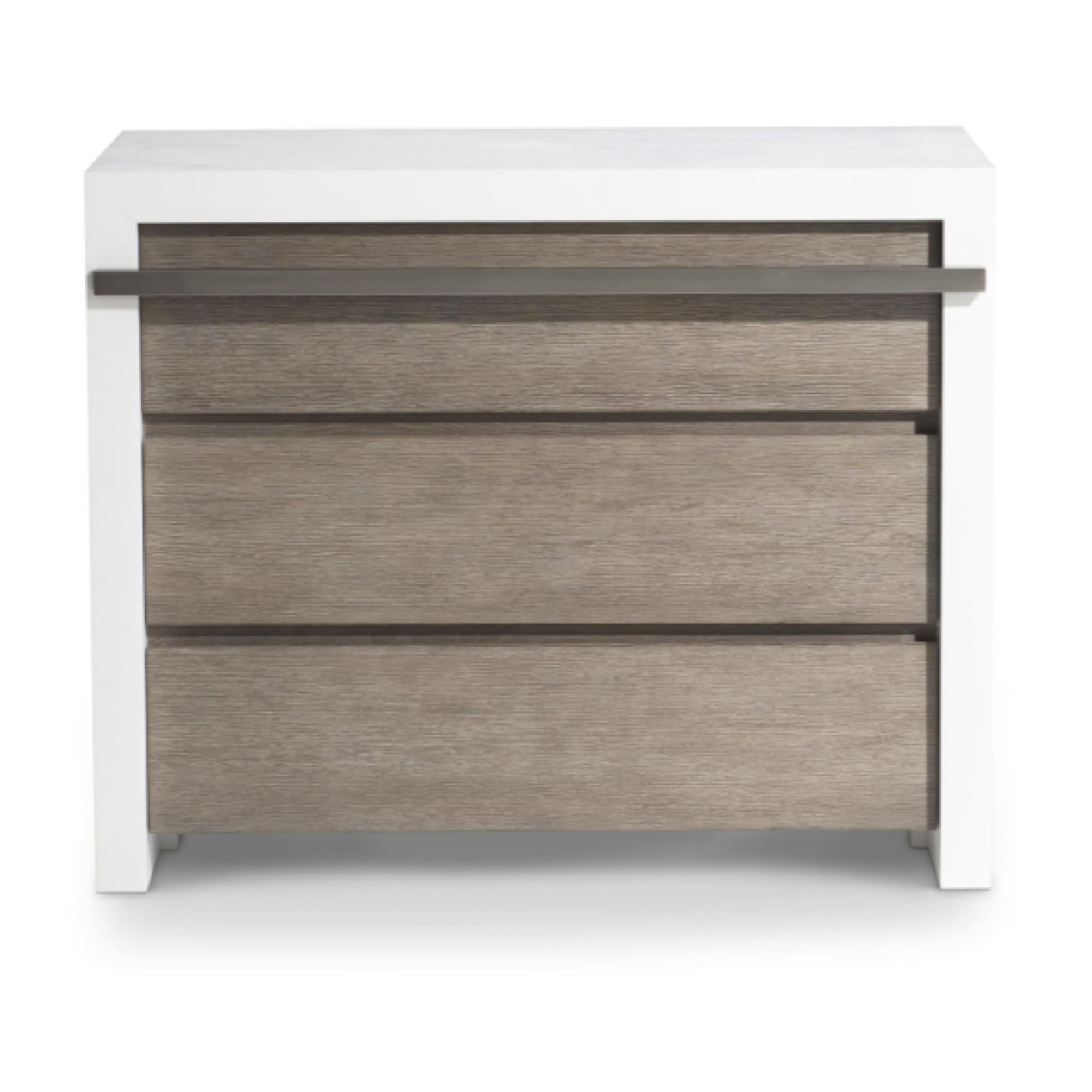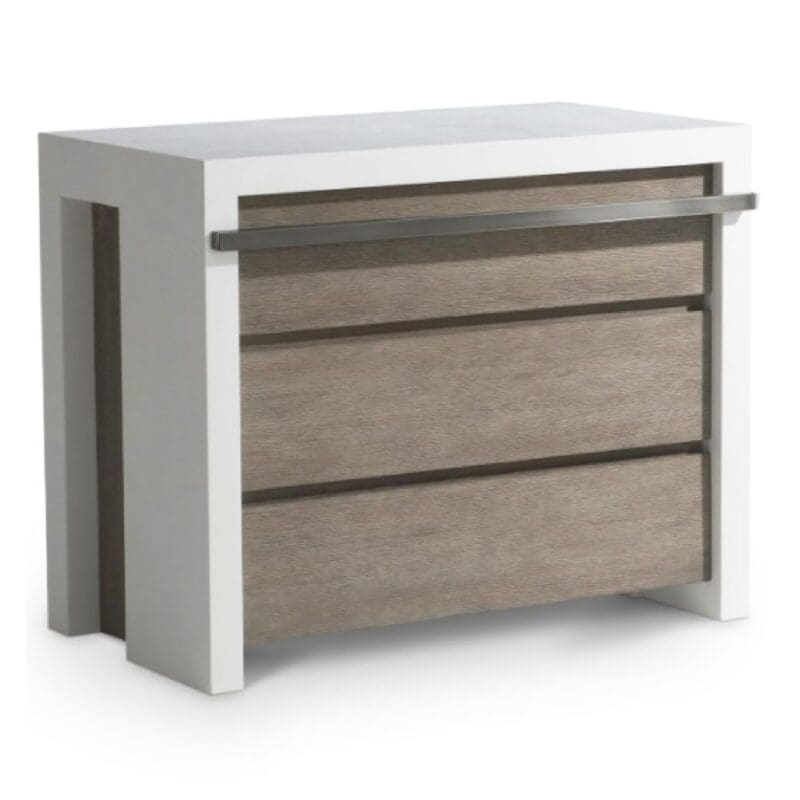 Daring design takes shape with bold forms and mixed finishes on this nightstand.
